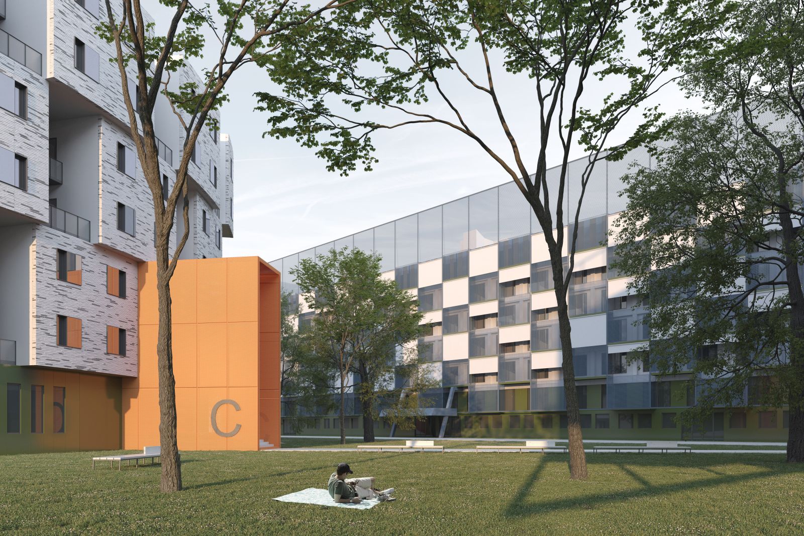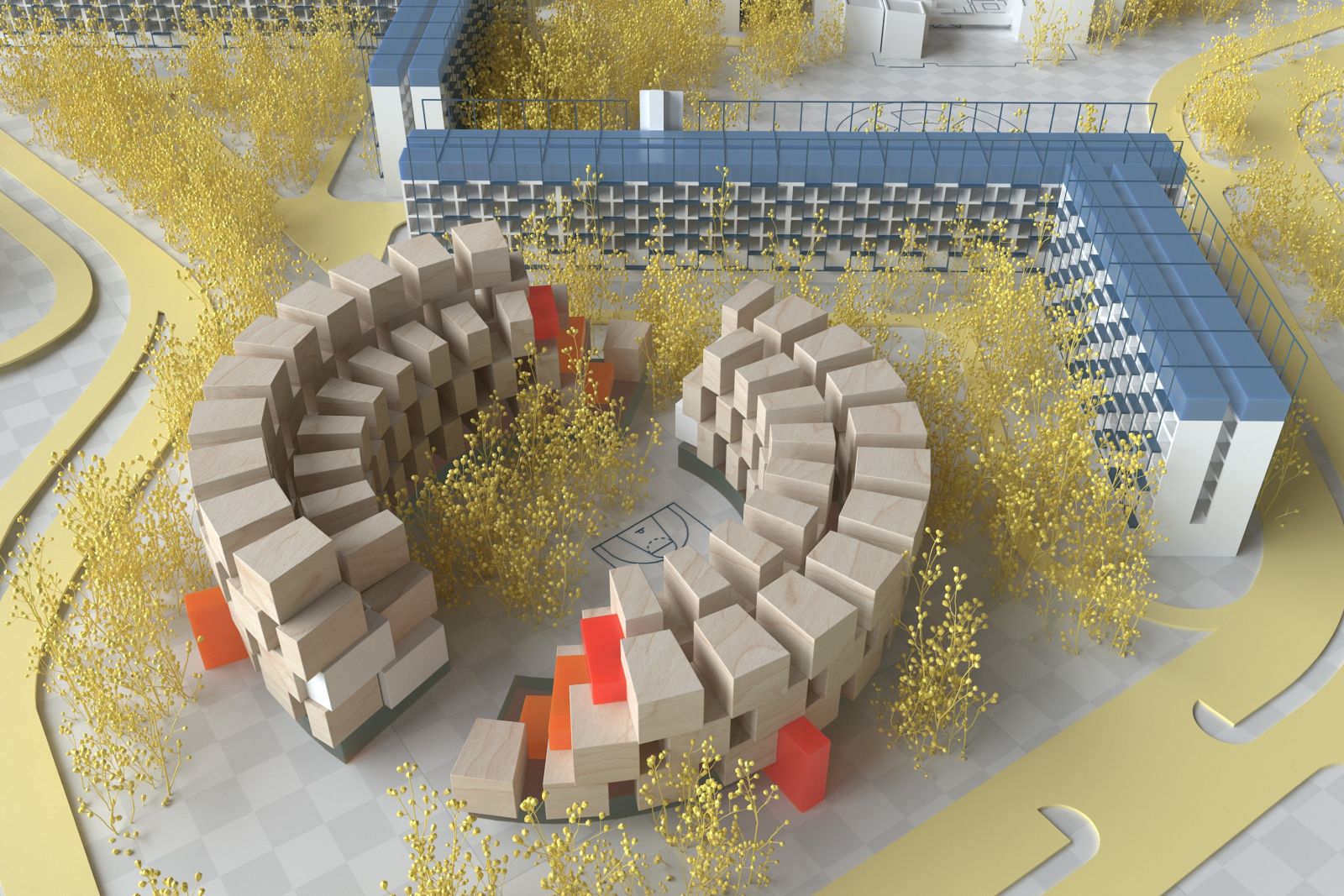 Život u studentskom domu često počinje od nametnute bliskosti u minimalnom prostoru. Visoka gustina stanovanja i energija mladosti čine da arhitektura studentskog stanovanja "puca" od života. Prostor u tom smislu ima izrazitu moć da inicira bliskost i veze među ljudima, često razvijajući prijateljstva za ceo život. Projekat budućeg doma za 1000 studenata u okviru kompleksa Studentski grad se zasniva na pažljivom naglašavanju interakcije među ljudima, kroz više nivoa razvoja prostora. Svaka soba pruža spektar mogućih konfiguracija minimalnog prostora za različite scenarije svakodnevnog života i stepene bliskosti među cimerima. Na taj način, ona omogućava smeštaj različitim društvenim grupama (dvoje stranaca, prijatelji, rođaci, par), ali se lako i prilagođava postepenom upoznavanju i razvijanju bliskosti među studentima koji u njoj žive. Uparivanjem soba i smicanjem po dubini razvijaju se mikro komšiluci oko lođa duplih visina, gde 8 studenata dele jedno zajedničko otvoreno dvorište. Dalje, svi stanari jednog sprata imaju svoju veliku krovnu terasu i dnevnu sobu uz nju - terase su među sobom kaskadno povezane, pa je omogućena vizura i interakcija sa daljim komšijama na ostalim nivoima. Suptilnim radijalnim sužavanjem svake jedinice i minimalnim kaskadiranjem zgrade ka spoljašnjosti formiraju se dve kružne lamele i veliko zajedničko dvorište u sredini kao momenat zajedničkog fokusa svih 1000 studenata.