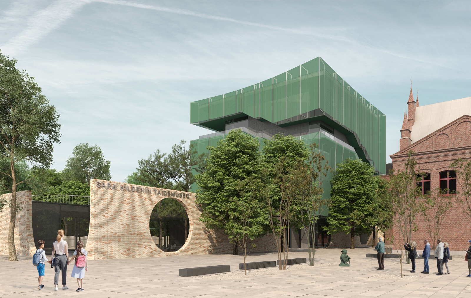 The idea of designing the new Sara Hildén Art Museum building within the Finlayson old industrial area, the very heart of the city of Tampere, means redefining the notion of a museum as a presumably introverted structure, mainly focused on showcasing and exhibiting the works within, to a state-of-the-art panoramic viewpoint that overlooks the entire Finlayson area and beyond, and includes within the exhibition route the actual living city itself. Situated at the former west entrance to the textile factory complex, on the very border between the industrial buildings and the public facilities that were built to support it – the factory owner’s palace and its garden, now a public park, the church and the former post office - the new museum building seeks to establish a link between the ephemeral exhibition contents inside and the precious built heritage of the city around.